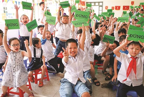 | Des élèves de l’école Xa Dàn, satisfaits des formations de Kid+. |