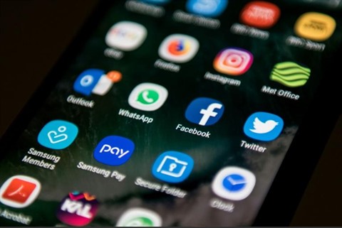 | Un téléphone portable avec ses applications, le 22 mars 2018, à Manchester United (Angleterre). |