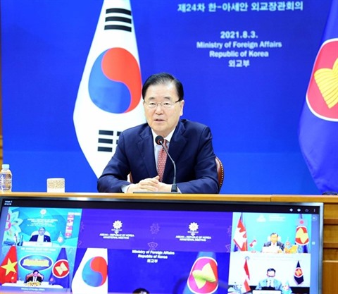 Chung Eui-yong a lancé l'appel de lutte contre le COVID-19 lors d’une conférence virtuelle des ministres des Affaires étrangères ASEAN - République de Corée, où il a réitéré la détermination de Séoul à approfondir le partenariat avec le bloc régional dans le cadre de sa nouvelle politique Sud.