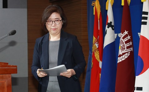| La porte-parole du ministère de la Défense, Choi Hyun-soo, le 23 juillet à Séoul. |
