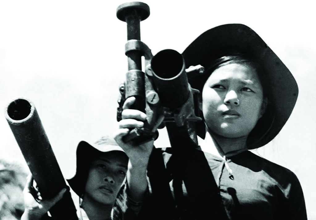 | “Femmes des milices populaires de Quang Bình ouvrant le feu sur des avions de combat américains” de Nguyên Huu Lôc. |