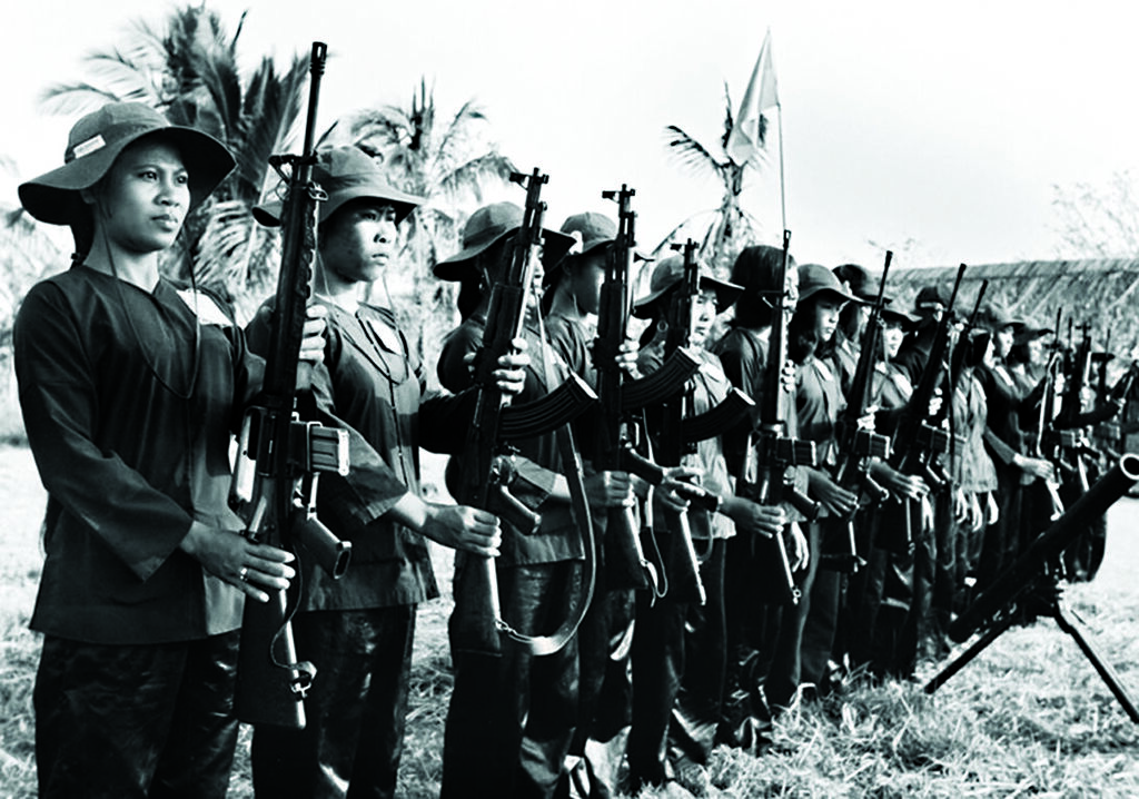 | “Huỳnh Thi Dung, cheffe adjointe de la Brigade d’artillerie féminine de Cái Nuoc,et ses sœurs d’armes en marche vers le front en mars 1973” de Vo An Khánh. |