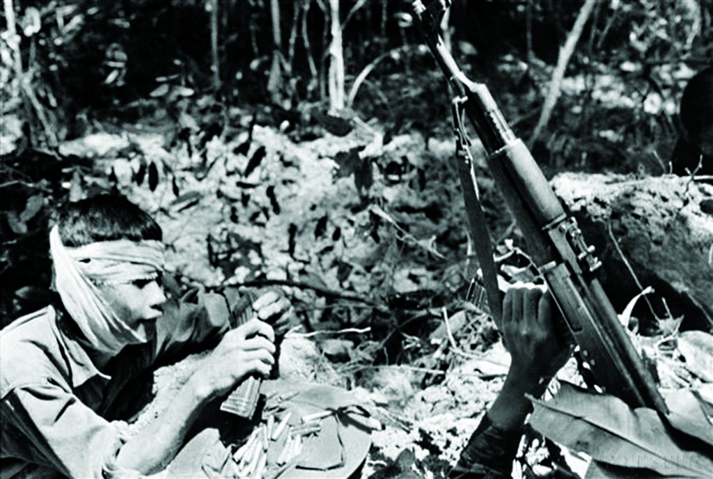 | “Blessés, mais toujours déterminés au combat. Soldats de l’armée de libération du front de Thiên Ngôn (Tây Ninh) en 1968” de Pham Van Thính. |