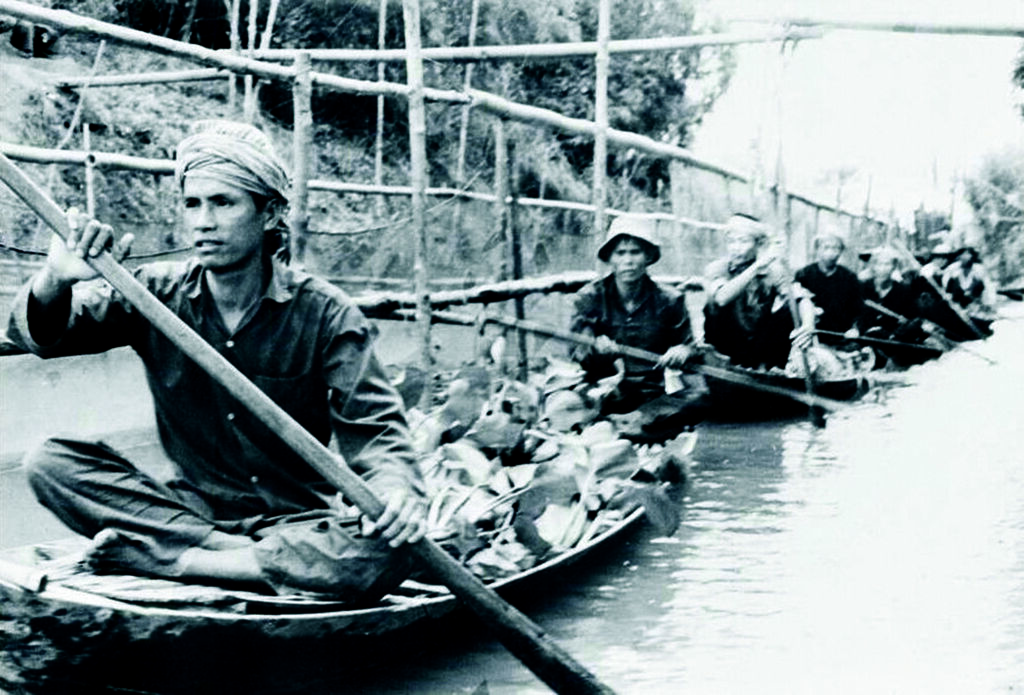 | “Transport d’armes en barques vers le front en 1968” de Nguyên Ðang. |
