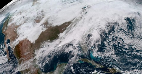 | Cette image satellite, datée du 28 décembre et fournie par l'administration nationale des Océans et de l'Atmoshère (NOAA) montre la tempête de neige Eboni qui affecte de larges pans des États-Unis. |