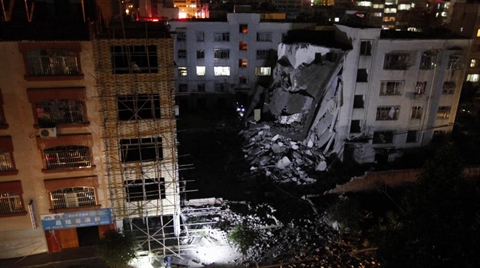 | Un immeuble de Liucheng (Chine) s'est partiellement effondré après une explosion probablement d'origine criminelle, le 30 septembre |