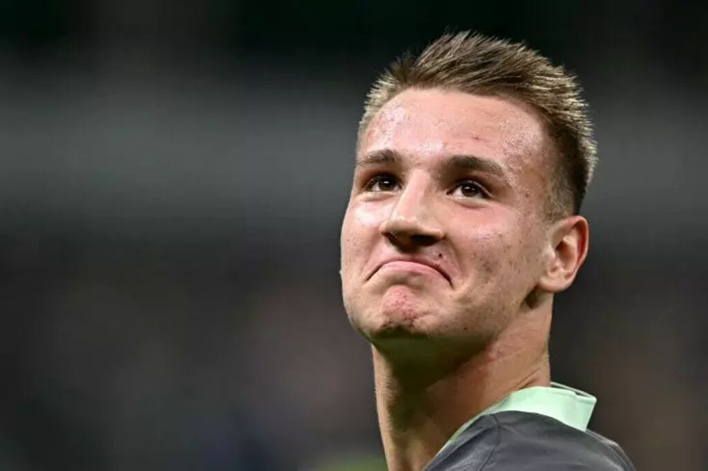 | L'attaquant italien de l'AC Milan Francesco Camarda à la fin du match de Ligue des champions contre Bruges, à Milan le 22 octobre. |
