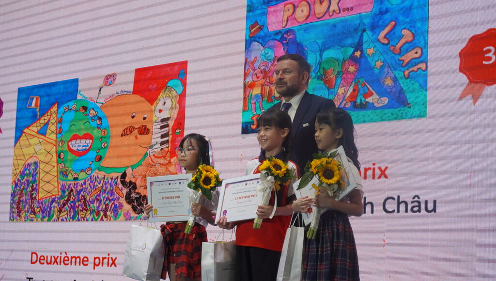 "Avant de pénétrer dans cet amphithéâtre, j'ai eu le privilège d'admirer les créations des élèves et étudiants vietnamiens ayant participé au concours "1001 raisons d'apprendre le français". Leurs affiches débordantes de créativité témoignent non seulement de leur passion pour la langue française, mais aussi de leur talent artistique exceptionnel", s’est exprimé Laurent Sermet, directeur de l'Agence universitaire de la Francophonie (AUF) en Asie-Pacifique.