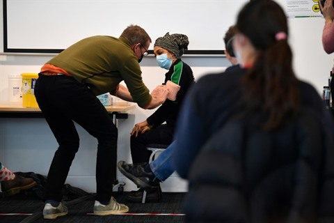 | Des bénévoles apprennent à vacciner, lors d'une journée de formation, à Londres le 30 janvier. |