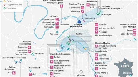 | Principaux sites prévus pour les Jeux Olympiques à Paris-2024. |