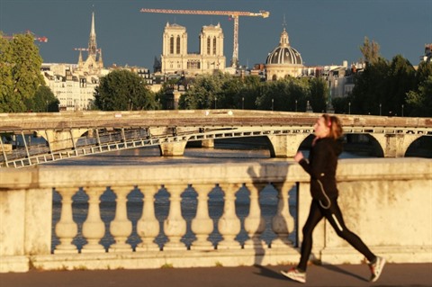 | Une joggeuse à Paris, le 30 avril. |