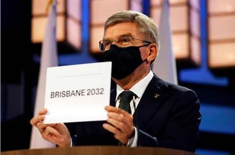 | Thomas Bach, le président du Comité international olympique (CIO), annonce que Brisbane sera la ville hôte des Jeux olympiques d’été de 2032, à Tokyo, le 21 juillet. |