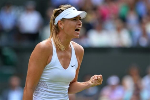 | La Russe Maria Sharapova lors de son quart de finale victorieux face à l'Américaine Coco Vandeweghe, le 7 juillet à Wimbledon. |