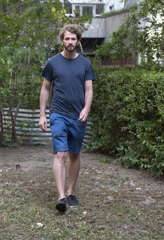 | Stefan Theissbacher, fondateur du site «Frag Nebenan» (Demande à ton voisin), se promène dans un jardin à proximité de son bureau à Vienne (Autriche). |