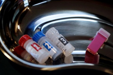 | Un kit de test rapide du VIH/sida à l'intérieur d'un véhicule de dépistage mobile, à Paris le 23 septembre 2013. |