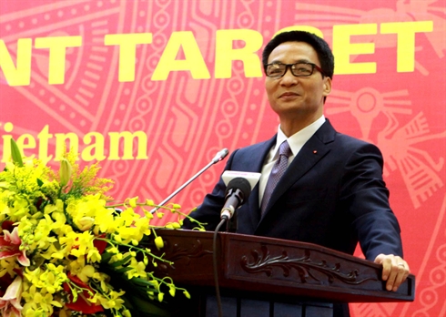 | Le vice-Premier ministre Vu Duc Dam, le 25 octobre lors d'une cérémonie en écho à l'objectif "90-90-90" de l'ONU dans l'espoir de mettre fin à l'épidémie de SIDA. |
