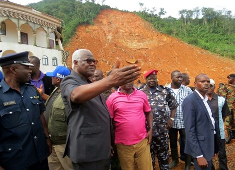 Le président sierra-léonais Ernest Bai Koroma en visite à Freetown, le 15 août après les inondations et glissements de terrain catastrophiques ayant frappé la capitale de Sierra Leone. Photo : AFP/VNA/CVN |