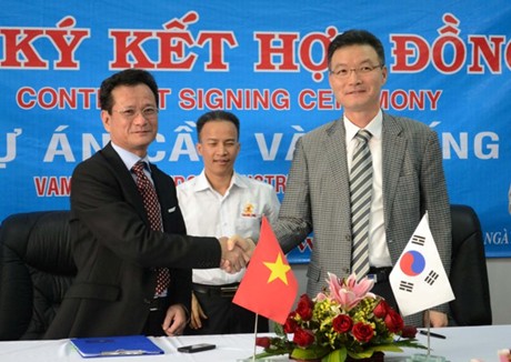 | Cérémonie de signature du contrat de coopération Vietnam - République de Corée pour le projet du pont à haubans de Vàm Công |