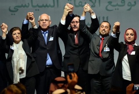 L'accord prévoit la mise en place d'un gouvernement d'union nationale basé à Tripoli, dirigé par l'homme d'affaires Fayez el-Sarraj et composé de 17 ministres dont deux femmes. Il stipule aussi l'établissement d'un conseil présidentiel pour une période de transition de deux ans qui devra s'achever par des élections législatives.