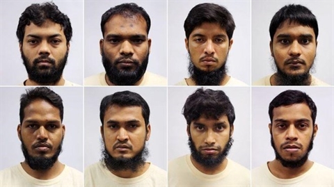 | Les huit Bangladais soupçonnés de préparer des attentats dans leur pays, récemment arrêtés par Singapour. |