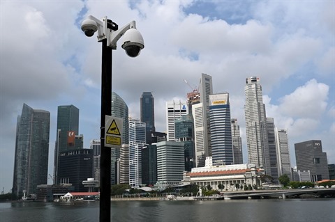 | Des cameras de sécurité devant la promenade de Marina Bay à Singapour, le 17 mars. |