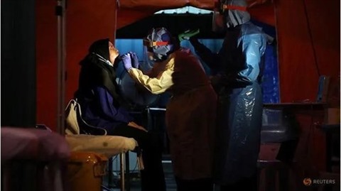 | Prélever l'échantillon pour les testes du COVID-19 dans un hôpital de Kuala Lumpur, en Malaisie, le 23 mai. |