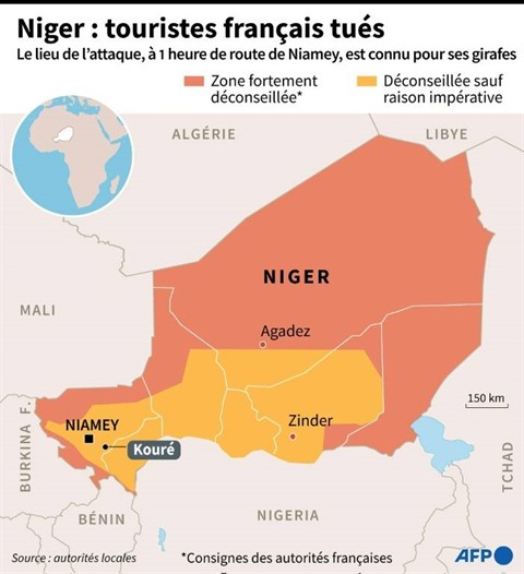"Il y a huit morts : deux Nigériens dont un guide (touristique) et un chauffeur, les six autres sont des Français", a annoncé le gouverneur de Tillabéri, Tidjani Ibrahim Katiella, en milieu d'après-midi.