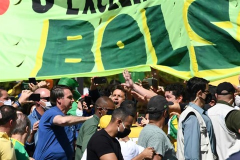 | Bain de foule du président brésilien Jair Bolsonaro, le 31 mai à Brasilia. |