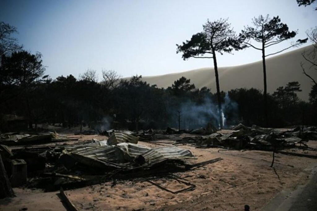| Le camping "Les flots bleus" sinistré par les feux de forêt, le 19 juillet 2022 au Pyla-sur-Mer, en Gironde. |