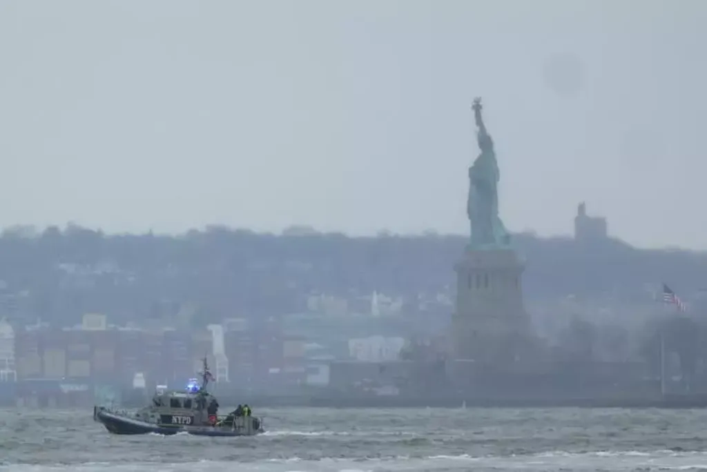| Un navire de la police de New York sur l'Hudson après qu'un hélicoptère s'est abîmé dans le fleuve, le 10 avril. |