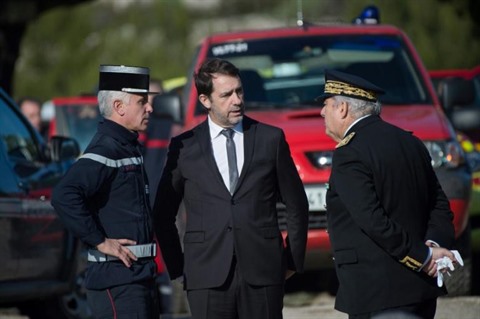 | Le ministre de l'Intérieur Christophe Castaner avec le Préfet Pierre Dartout sur les lieux du crash meutrier d'un hélicoptère de la protection civile. |