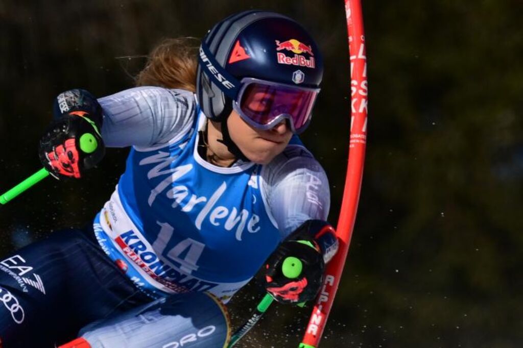 | La skieuse italienne Sofia Goggia lors d'un slalom géant comptant pour la Coupe du monde à Kronplatz (Italie). |
