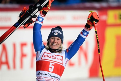 La tricolore a remporté la course devant la vice-championne olympique italienne Federica Brignone (à 29/100) et la championne olympique suédoise Sara Hector (à 31/100). Reparties sans médaille des Jeux olympiques de Pékin en février, les skieuses françaises se rattrapent en cette fin de saison. Elles ont profité du grand soleil et de la magnifique piste de Lenzerheide (Suisse), exigeante et parfaitement glacée, pour signer un doublé rare.