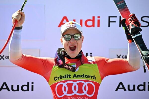 Il s'est imposé au nez et à la barbe des deux grands favoris, le Norvégien Aleksander Aamodt Kilde, 2e à 3/100e et le Suisse Marco Odermatt, 3e à 5/100e, respectivement vice-champion du monde et champion du monde de la spécialité.