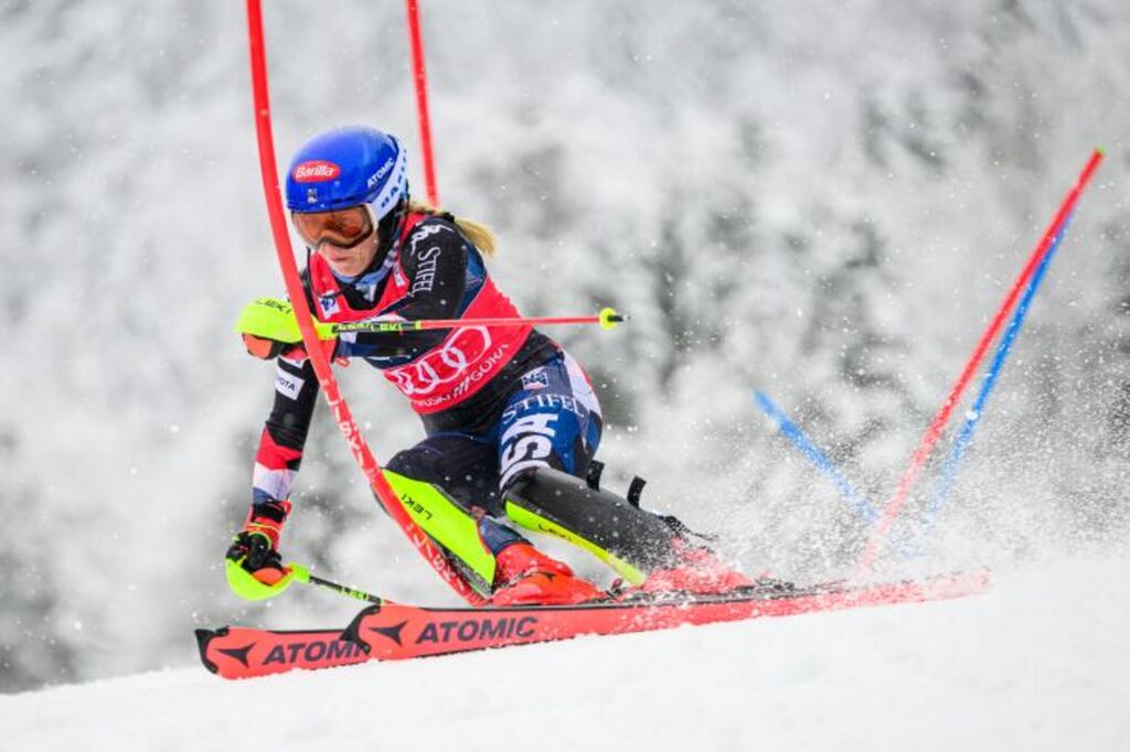 | L'Américaine Mikaela Shiffrin lors de la première manche du slalom de Kranjska Gora en Slovénie, le 7 janvier. |