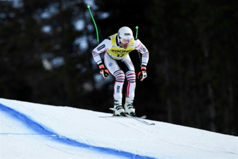 | Le Français Johan Clarey, lors du 2e entraînement de la descente de Lake Louise (Canada), le 24 novembre. |