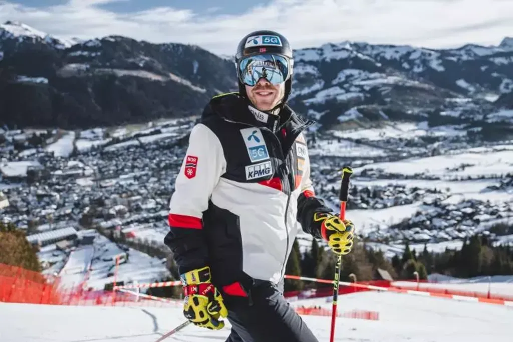 | Le skieur norvégien Aleksander Aamodt Kilde en marge de la descente de Kitzbuhel, en Autriche, le 25 janvier. |