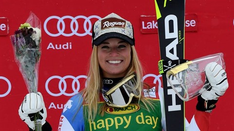 Elle a devancé dans le premier super-G de la saison, raccourci en raison des chutes de neige de la nuit, la Liechtensteinoise Tina Weirather, 2e à 10/100e, et l'Italienne Sofia Goggia, 3e à 59/100e, pour son troisième podium en huit jours dans trois disciplines différentes (géant, descente et Super-G).