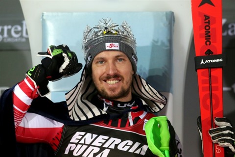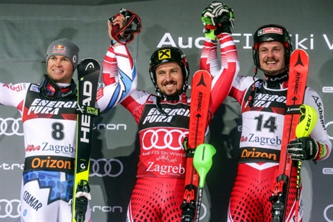 | Marcel Hirscher lors de sa victoire au slalom de Zagreb, le 6 janvier. |