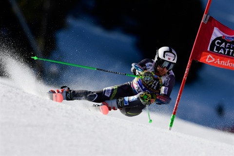 | Le Norvégien Rasmus Windingstad lors du slalom géant de Soldeu en Andorre, le 16 mars. |