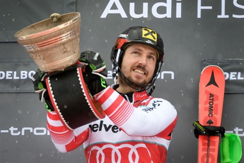 | L'Autrichien Marcel Hirscher vainqueur du slalom d'Adelboden le 13 janvier. |