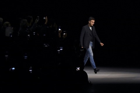 | Hedi Slimane, créateur de la marque Celine, lors du défilé à Paris, le 28 septembre. |