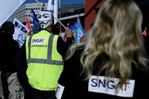 Des employés en grève d'Air France devant le siège de la compagnie à l'aéroport Roissy-Charles de Gaulle. Photo: AFP/VNA/CVN |