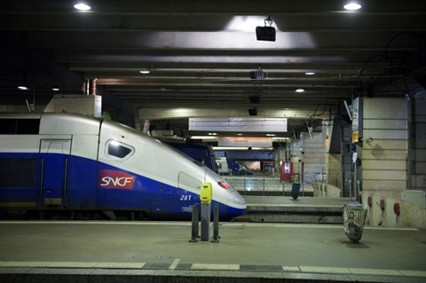 | Un TGV à l'arrêt à la gare Montparnasse, le 3 décembre, après une panne du système d'aiguillage. |