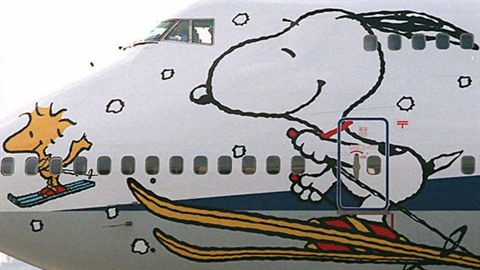 | Un Boeing décoré de Snoopy et Woodstock, à Tokyo, le 24 octobre 1996. |