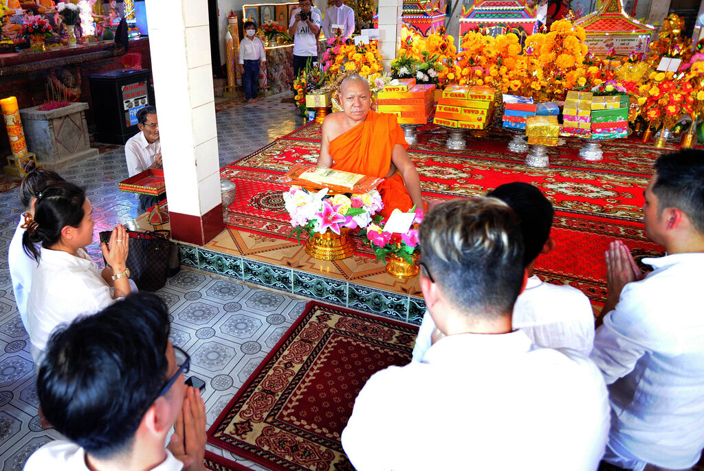 | Les Khmers portent des costumes traditionnels lors de la fête de Katina. |