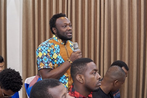 | Un étudiant de l'IFI posent les questions aux intervenants. |