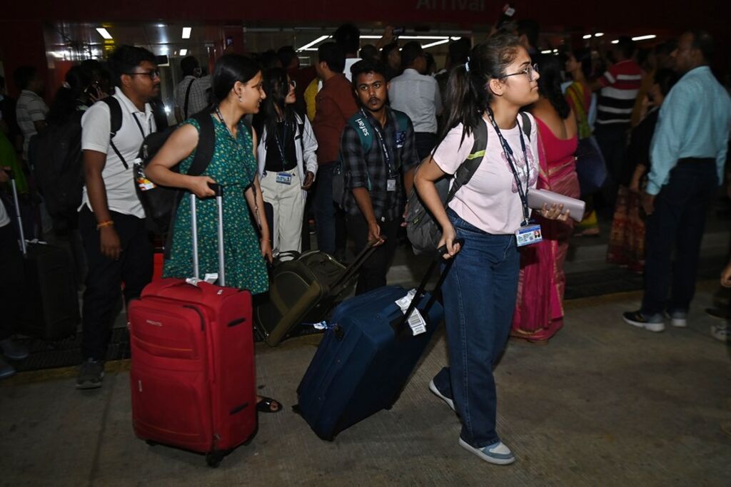 | Des étudiants sauvés des violences en cours à Manipur arrivent à Agartala, chef-lieu de l'État indien du Tripura (Nord-Est), le 7 mai. |
