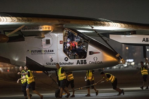 | L'avion Solar Impulse 2 s'apprête à décoller de l'aéroport international du Caire le 24 juillet. |