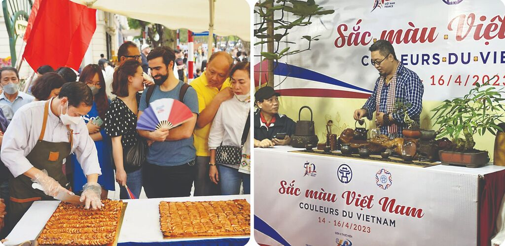 En plus des réunions officielles, une kyrielle d’activités culturelles, gastronomiques ou touristiques a été organisée. Avec comme point d’orgue les deux festivals “Couleurs du Vietnam“ et “Balade en France“, qui se sont tenus dans la zone piétonne autour du lac Hoàn Kiêm (Lac de l’épée restituée), au cœur de Hanoï. Ces évènements culturels et gastronomiques ont apporté aux délégués et notamment à la population hanoïenne une belle occasion de déguster des spécialités des deux pays, de s’immerger dans une ambiance festive où les stands des villes et provinces vietnamiennes côtoyaient ceux d’entreprises françaises. Une initiative originale qui a mis en valeur “les cultures partagées“, le thème de ce 50e anniversaire de l’établissement des relations diplomatiques franco-vietnamiennes.